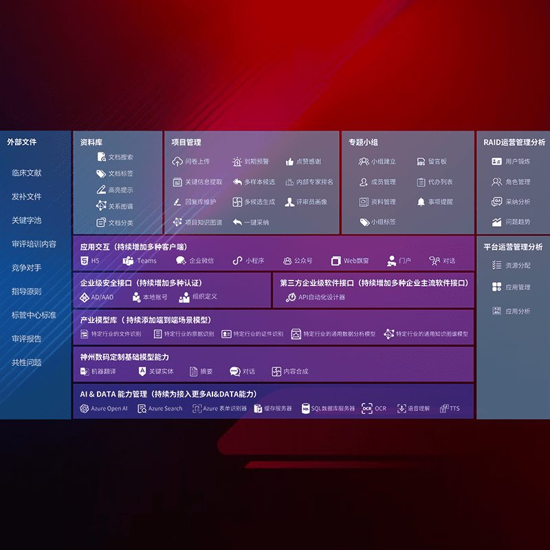 医疗器械产品上市前,,,要熟悉严格与繁复评审标准,,整理分析监管机构指导文件中的海量信息。。。企业急需一个智能化解决方案,,,,提升知识管理效率,,,提高评审通过率,,,,以提升其市场竞争力。。。